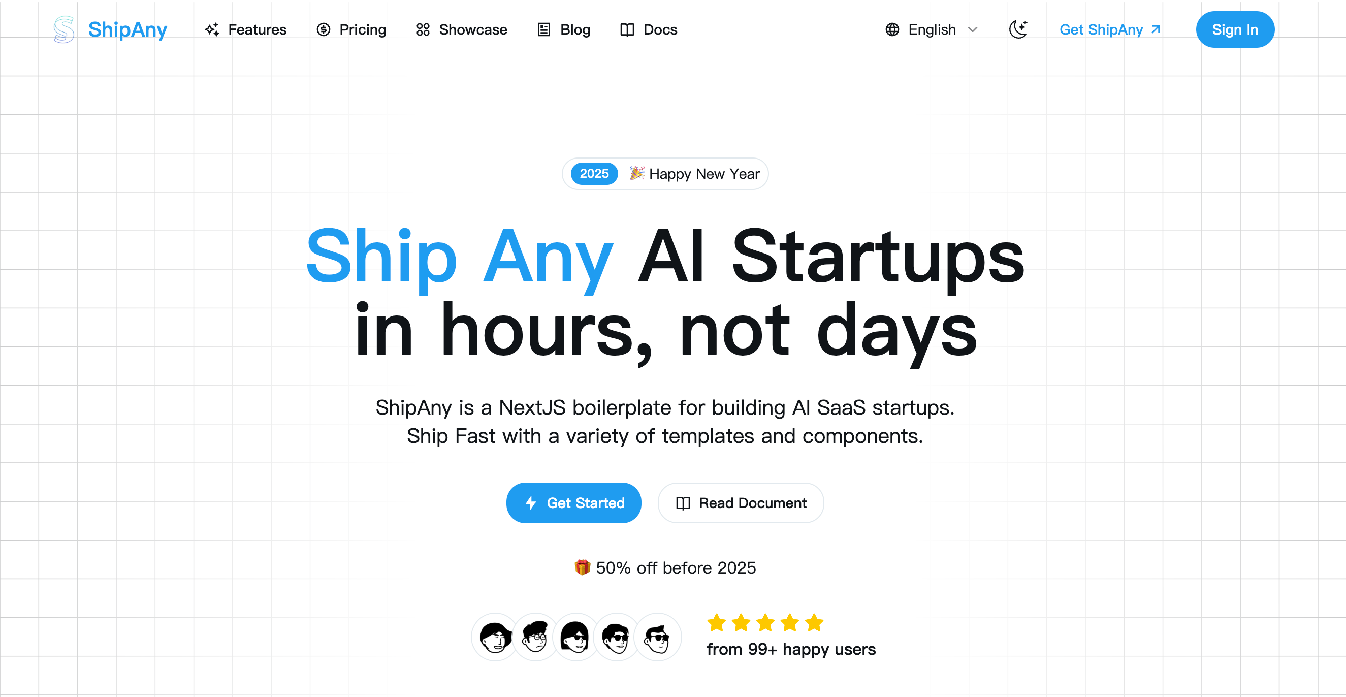 ShipAny 是一个基于 NextJS 的 AI SaaS 开发框架,内置丰富的组件和 AI SDK,帮助你快速完成 AI SaaS 项目开发。